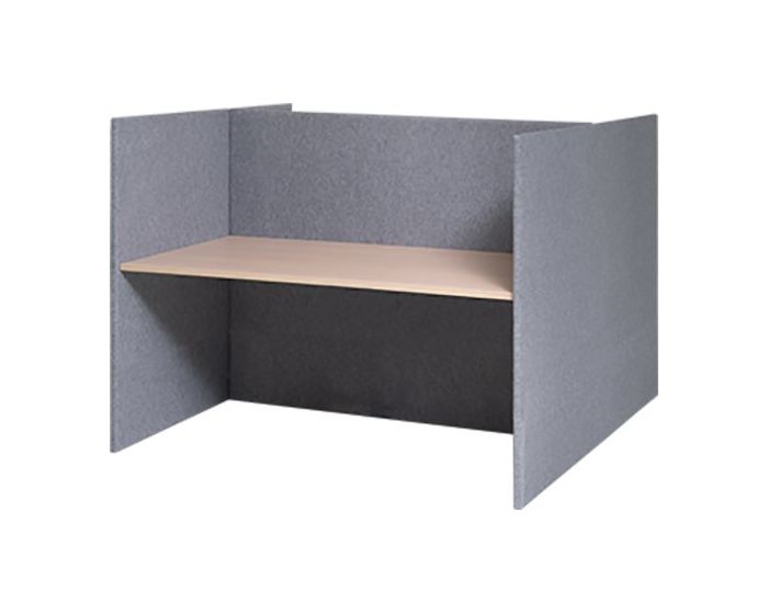 De akoestische werkplek duo is voorzien van 2 akoestische werkplekken. Daarnaast zorgen de wanden voor extra privacy. Deze wanden zijn van een akoestische stof (Vilt). Dit houdt in dat geluidsgolven worden opgevangen wat galm voorkomt. Standaard heeft de akoestische wand een dikte van 32 mm. Voor maximale akoestische voordelen kunt u echter kiezen voor een dikte van 62 mm. De werkplekken zijn beide standaard voorzien van melamine bureaubladen (worden ondersteund door een zwart frame) en stelvoetjes. Tevens kunt u kiezen uit diverse kleuren en afmetingen.
