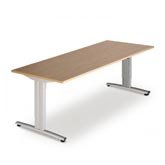 Bureaus met een T-poot onderstel. Net als onze andere bureaus is het frame gemaakt van staal en de bladen zijn afgewerkt met een toplaag van melamine. Een melamine toplaag zorgt ervoor dat het bureaublad gemakkelijk is schoon te maken, tegen een stootje kan en geschikt is voor langdurig en intensief gebruik. U heeft de keuze uit een vaste hoogte frame of een hoogte instelbaar frame.