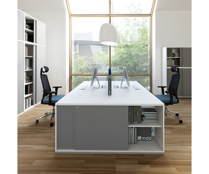 - Hoeveel mensen werken aan het bureau? Wanneer er meerdere mensen aan hetzelfde bureau werken kies dan sowieso voor een elektrisch verstelbaar bureau. Dit hoeft niet meteen een sta-zit bureau te zijn al geeft dit wel meer vrijheid. Een elektrisch verstelbaar bureau is eenvoudig in te stellen naar de juiste hoogte. Zijn het steeds dezelfde mensen die aan het bureau werken? Kies dan voor een bureau met memory functie. Stelt het bureau één keer goed af volgens de Arbo normen en sla vervolgens deze instelling op. Via een snelmenu kan de medewerker dan eenvoudig zijn of haar opgeslagen instellingen kiezen. Het bureau past zich dan automatisch aan. Wanneer er genoeg wordt bewogen gedurende de dag en er maar één persoon aan het bureau werkt dan kan ook een handmatig verstelbaar bureau of tafel prima functioneren als werkplek. U kunt ook kiezen voor een bureau eiland waar meerdere mensen aan kunnen werken.
