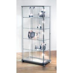 Design vitrinekast, zeer geschikt voor het plaatsen in entree, wachtruimtes of in uw kantoorruimte. De Vitrinekast wordt standaard zonder lampjes geleverd. In de opties kunt u aangeven of u 5 lampjes van 20 Watt erbij wilt bestellen, dit is voor een meerprijs.