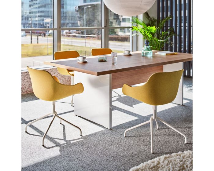 De Vergadertafel Martino is geschikt voor 6 tot 8 personen en optioneel uit te breiden met twee geïntegreerde mediaboxen. Deze bevatten elk een dubbele stroomaansluiting (2x 230V) en twee internetaansluitingen, wat de tafel uitermate geschikt maakt voor moderne vergadersessies en presentaties.