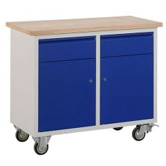 Robuuste werkbank voor werkplaats omgevingen. Deze industrieel inzetbare werkbank kan tegen een stootje en gaat lang mee. Het topblad is enkelvoudig geolied en is eenvoudig schoon te maken. Het blauwe frame heeft een voet van 6,5 cm breed en 5 cm diep en kan in hoogte worden versteld (54-99cm). Optioneel kunt u kiezen voor een onderbouwblok om spullen in op te bergen. Deze werkbank is een duurzaam product voor een leven lang sleutelplezier.